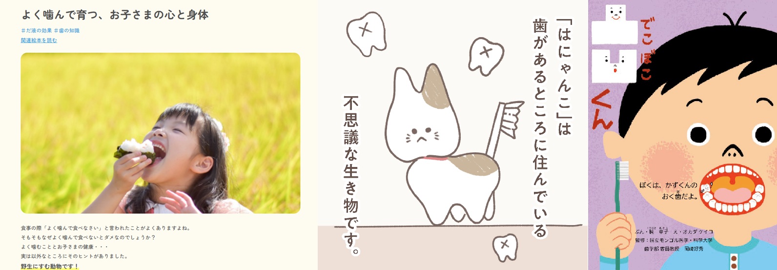 はいくでは、親子で学べる「歯のWeb絵本」、絵本の読み解きのポイントを紹介する「保護者様のてびき」、オリジナルキャラクターのはにゃんこが登場する「WEB漫画」など、歯科治療や口腔内の健康管理などの様々な情報発信を行っております。また、年に1回、同サイト上で歯に関する俳句・川柳の募集も実施しており、小学生からご高齢の方まで多くの方にご応募いただいています。