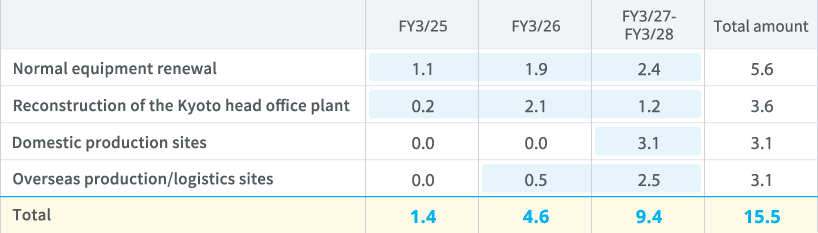 During the Fifth Medium-Term Management Plan, we will establish new production bases in Japan and overseas and invest in increased production on an unprecedented scale and build a production structure that can respond to growing demand in various regions.