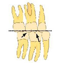 「6つの鍵」の研究で、正常咬合には歯冠の長軸、歯肉側部の適正な遠心傾斜が必要であることが観察されております。 SWAブラケットに アンギュレーション(ティップ)が個々の歯で予め定められた角度になるように組み込まれており歯の近遠心的適正傾斜は自動的に決定されます。