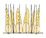 正常咬合ではスピーの彎曲は平坦か、僅かに弧を描く程度です。下顎第2第臼歯の最も顕著な咬頭と下顎中切歯端を結ぶ線からの計測では1.5mmをこえる深さの彎曲はありませんでした。SWAは適正なスピー彎曲と調和した歯列をもたらします。