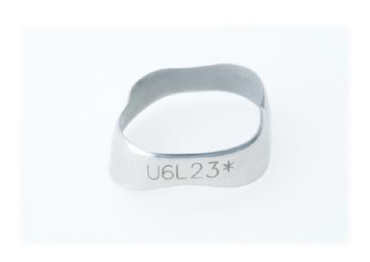 歯牙の解剖学的形態(頬側咬頭の溝、舌側咬頭の豊隆)にあわせたバンドデザインで...