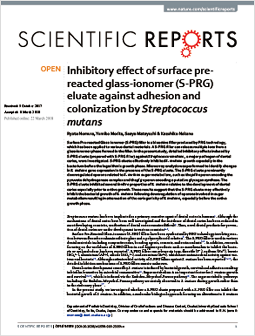 S-PRGフィラーは独自開発されたバイオアクティブ素材です。6種類のイオンがリリースされ、その作用により口腔内環境の健全化が期待されます。