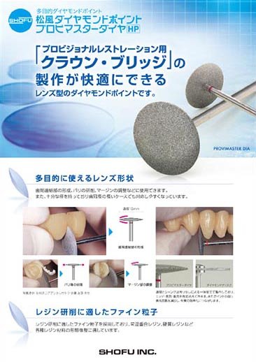 プロビジョナルレストレーション用クラウン・ブリッジの製作が快適にできるレンズ型のダイヤモンドポイントです。適切な歯間連結部の形成が容易に行えます。