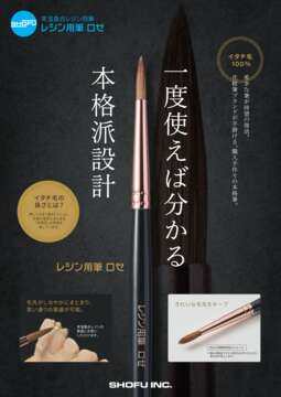 「レジン用筆 混毛」よりも操作性・耐久性を向上させており、品質とコストのバランスを追求した設計です。筆先までしっかりとコシがあるため、思い通りの筆積みを行なえます。