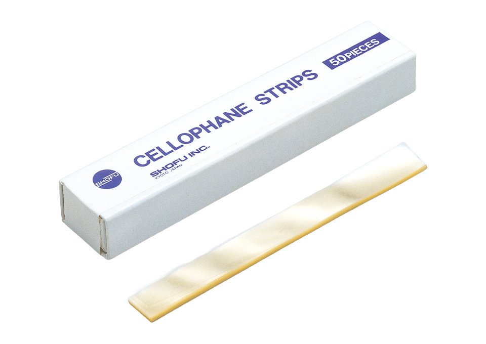 コンポジットレジン、常温重合レジン等に使用するストリップスです。材質はセロファン紙です。