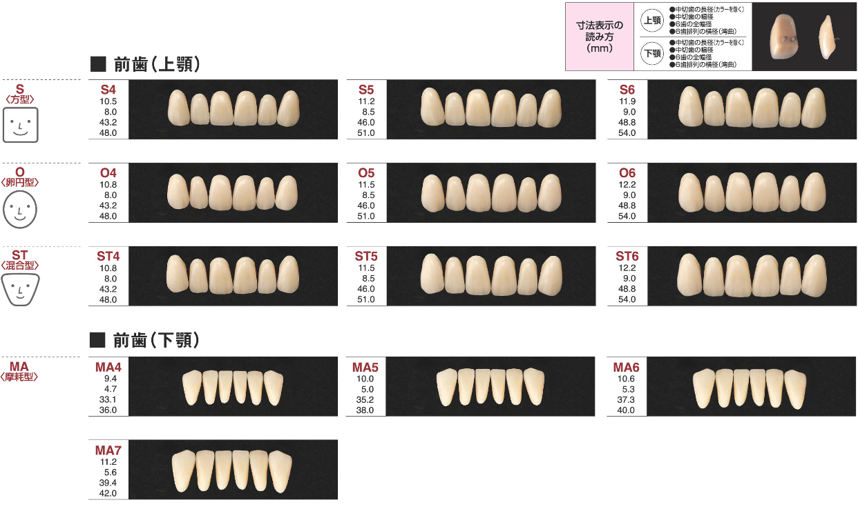 【形態】上顎9種、下顎4種