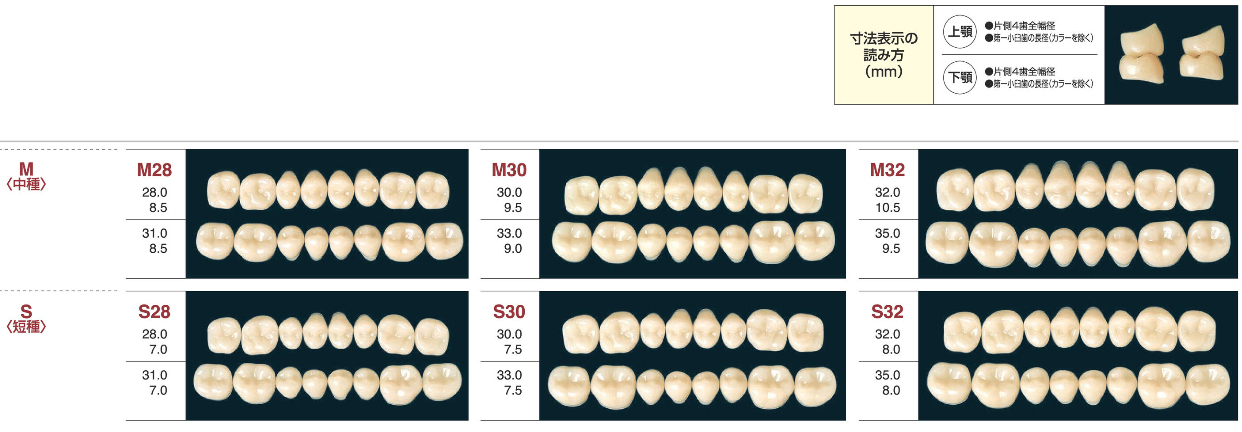 解剖学的なバイオ形態を基本型とし、咬頭傾斜角が33°のレジン臼歯で、排列しやすく、硬度・ 耐摩耗性にすぐれています。