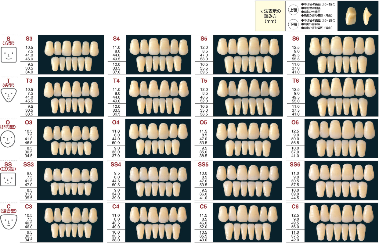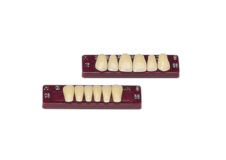 天然歯のもつ色調や形態を忠実に再現した、審美性・硬度・耐摩耗性にすぐれた排列のしやすいレジン歯です。