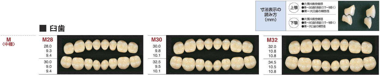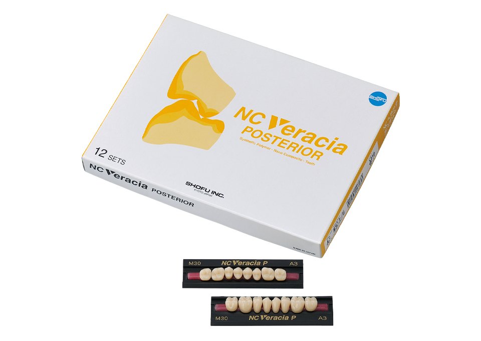 エナメル部、デンティン部に「MF-Hコンポジット」を採用した3層構造の硬質レジン歯です。耐摩耗性、耐衝撃性にバランスのとれたすぐれた物性を示します。