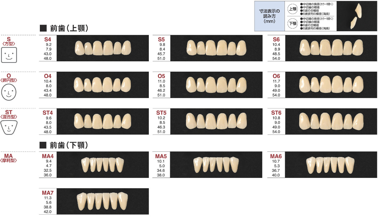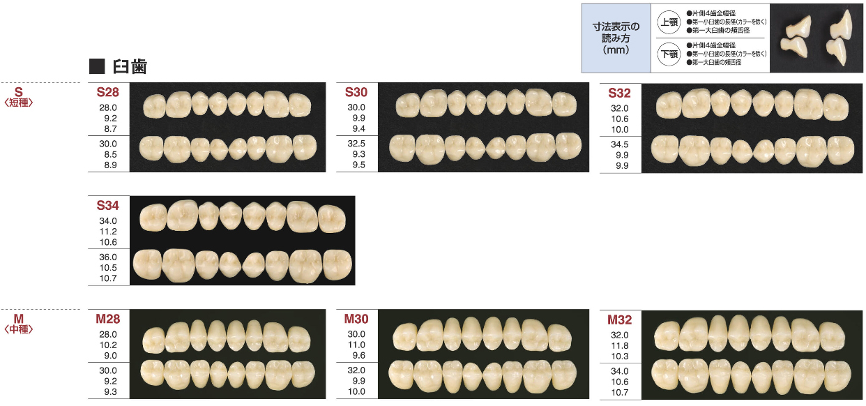 1箱12組 【色調】2色(A2、A3) 【形態】上下顎各1種:S(短種)