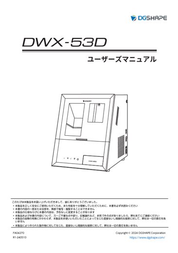 本体、電源コード、電源プラグアダプター、USB ケーブル、安全上のご注意、クイックアクセスガイド、検出ピン、自動補正用治具、トルクドライバー、T 型六角ドライバー、L 型六角レンチ、コレット着脱用治具、ミリングバーホルダー、ミリングバー位置決め治具、レギュレーター、バーコードラベル、標準アダプター、オープンエッジアダプター、アダプターラック、ピン材料用アダプター、タブレットホルダーなど