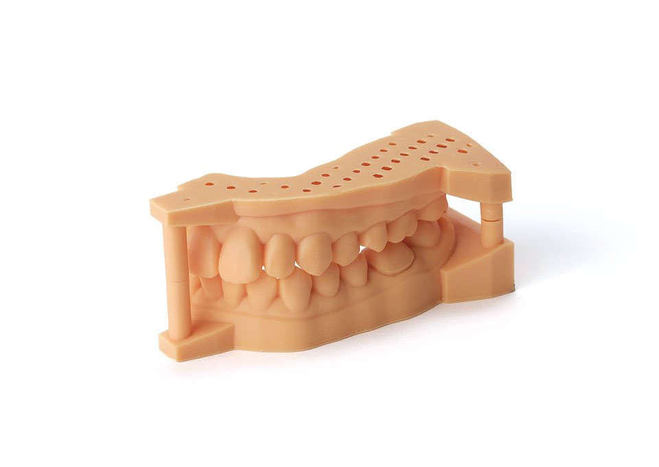 歯科模型の造形用インクです。技工作業や納品に適した寸法精度と強度を発揮します。視認性にすぐれ、適合状態が確 認しやすい色調設計です。また、経時変形しにくく、形状維持性にすぐれます。