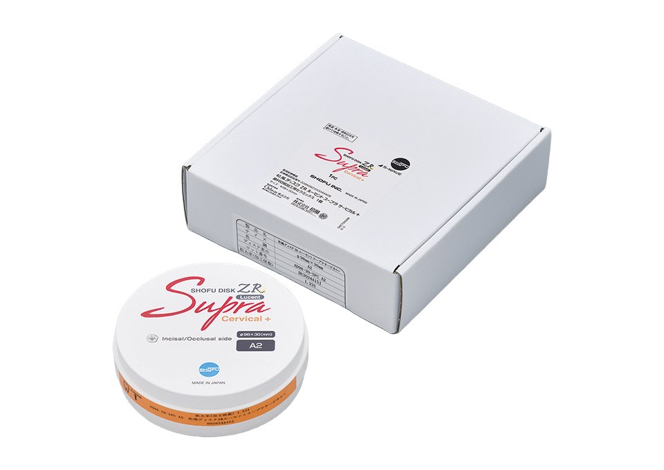 ご好評いただいております松風ディスク ZR ルーセント スープラのサービカル層を厚く設計した製品です。歯冠部のグラデーションの美しさと歯頚部は強度のある厚いサービカル層が両立しており、高さのあるインプラント症例に適しています。