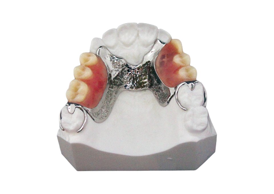 インプラントによるオーバーデンチャーの沈下と動揺防止の説明が可能です。右:犬歯に樹脂クラスプ左:インプラント