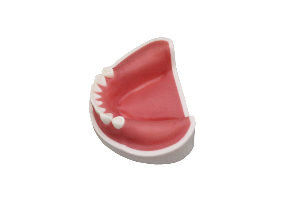 切開、剥離、ドリリング、印象採得ができる実習用模型です。欠損部骨材は2層構造になっています。