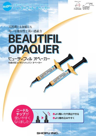 遮蔽力と硬化性にすぐれたオペーカーです。 程よい稠度に設定されたペースト性状で、使いやすさを追求しました。2色の色調で審美性にもすぐれ、さまざまな症例に対応可能です。