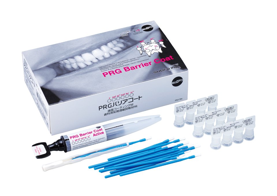 「知覚過敏抑制(保険適用)」と「カリエスリスクの低減(保険適用外)」、「小窩裂溝封鎖(保険適用)」の3つの用途に使用できる歯面コーティング材です。松風独自のS-PRGフィラーを含有しており、その働きで口腔内環境の健全化をサポートします。