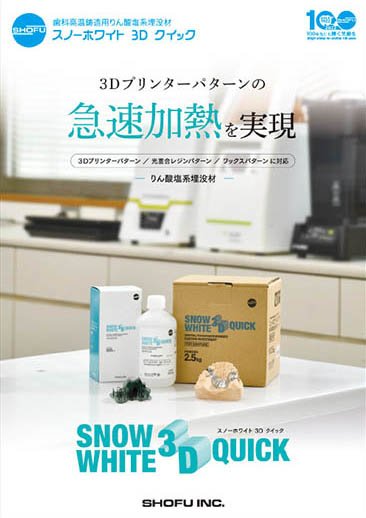 3Dプリンターパターンを急速加熱できる埋没材です。従来品「スノーホワイト3D」の高い流動性を継承し、パターンの変形を防止。独自の粒度調整と高い総合膨張によりすぐれた面性状・適合性を実現します。3Dプリンターパターン以外にも光重合型レジンパターン、抜き取り法等、幅広い用途でお使いいただけます。