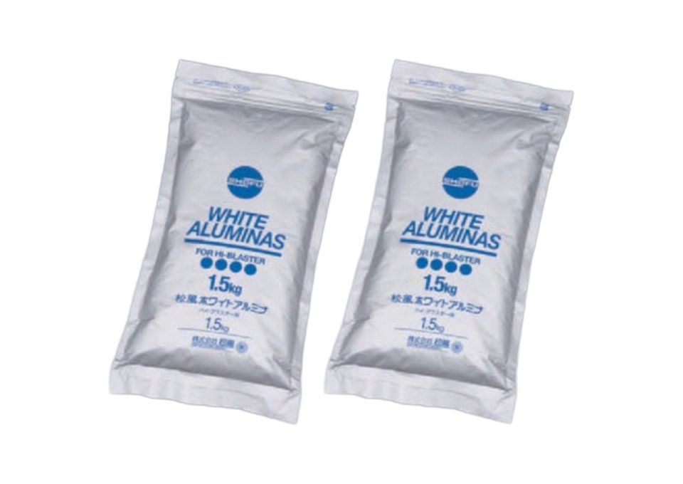 使用頻度の高いガラスビーズとハイアルミナの2種類の研磨材が使い分けられます。