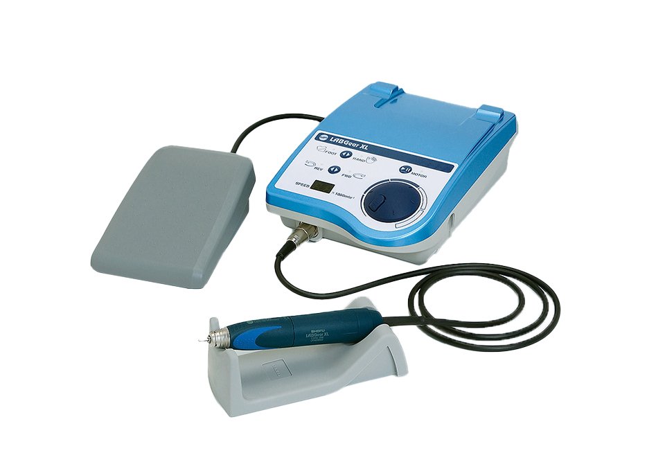 ユニット1、モーターハンドピース1(スタンダードタイプまたはハイトルクタイプ)、ラボギア用フットコントローラー 1、電源コード 1、ハンドピーススタンド 1、スパナA(平形) 1、スパナB(L形) 1