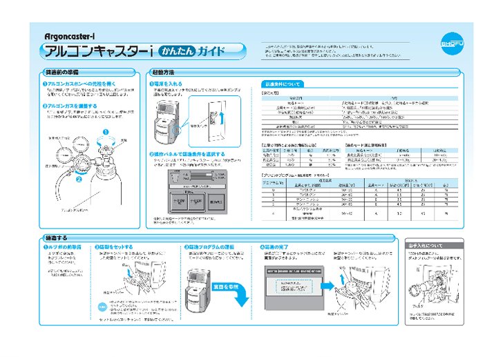 アルゴンガスボンベ 2、アルゴンガス用減圧調整器 1、減圧調整器取り付け用スパナ 1、真空ポンプ200 1、ルツボセット(ルツボ2個、少量用ルツボ2個) 1、耐熱リング受け(S・M・L・スペーサー) 各1、耐熱リング受け取り出し金具 1、ステンレスリング(ゴム台付き)(※S-7584)、6584、6574、5560、5543、4032、4027) 各1、プラスチックリング(ゴム台付き)(※P-7594、6594、6582、5557、5543、4032) 各1、耐圧ホース(2m) 3、ホースバンド 6、本体用ヒューズ(250V 20A) 1、真空ポンプ用ヒューズ(250V 5A) 1、フィルターエレメント 1、ボロンスプレー(内容量250g) 1、本体カバー 1