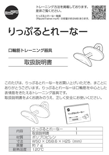 りっぷるとれーなーは、口輪筋を中心とした表情筋を鍛えるトレーニング器具です。