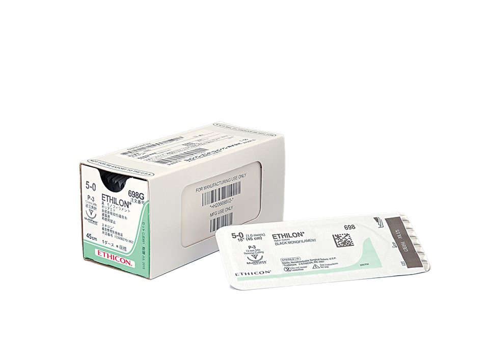 | 698G | エチロン® | プライム逆三角針 | 13 | 弱彎(3/8) | 黒 | 45 | 5-0 | 12 |