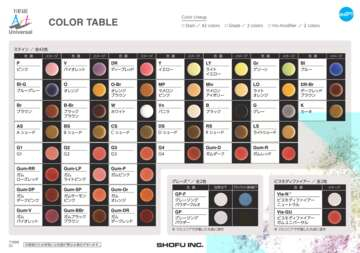 | ガム色 15色 | G1、G2、G3、G4、Gum-D、Gum-R、Gum-RR、Gum-LP、Gum-P、 Gum-DP、Gum-SP、Gum-Or、Gum-V、Gum-BBr、Gum-DR |