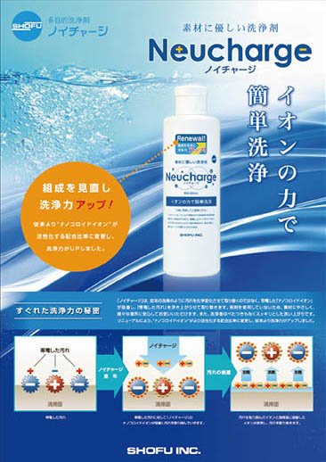 汚れを化学変化させて取り除くのではなく、帯電した「ナノコロイドイオン」が吸着し、「帯電した汚れ」を浮き上がらせて取り除く多目的洗浄剤です。