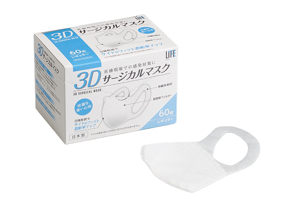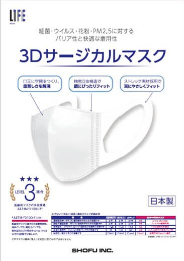 医療用マスクの米国規格ASTM-F2100-11の最上位レベル「3」に適合した高品質マスクです。高いバリア性と快適な付け心地を備えた立体型構造です。