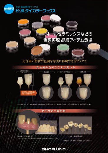 支台歯の形状および色調を再現するワックスです。高光透過性材料のように支台歯の色調に影響される補綴装置を製作する際に使用する材料です。ナイスフィットを使用することでメタルコアも表現できます。