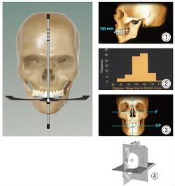 - 以前から歯科医は切歯と犬歯のラインを目と平行にするよう教えられています。目の位置が傾いている場合は歯牙も傾いて形成されます。歯列の正中線は重要で必ず顔面の中心線と関係します。そのため、歯列の正中線を決める顔面の中心線を記録する必要があります。そうすると、咬合平面を歯列の正中線と垂直に設定することができます。