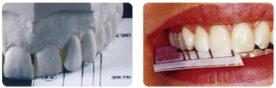 付属品のグリッドブロックの用紙にはゴールデンプロポーションが組み込まれております。グリッドブロックに予め組み込まれているサイズを基準に正面観の中切歯から第1小臼歯までの4本の各々の幅のゴールデンプロポーションを測定することができます。写真左は8.5mm(中切歯近遠心幅)のグリッドブロックの用紙で写真右は7.5mm(中切歯近遠心幅)のグリッドブロックの用紙を用いて測定しております。