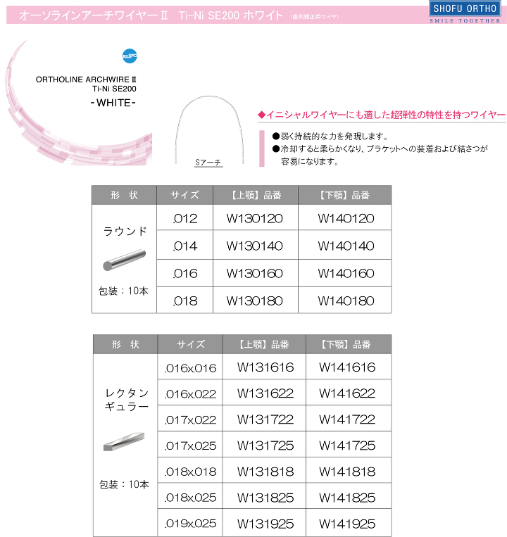 オーソラインアーチワイヤーⅡ Ti-Ni SE200 ホワイト