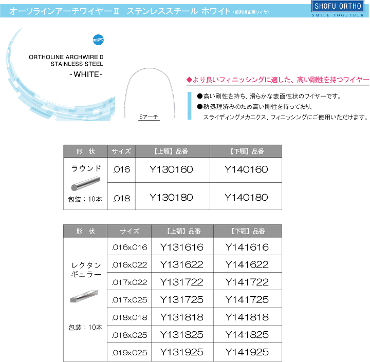 オーソラインアーチワイヤーⅡ ステンレススチール ホワイト