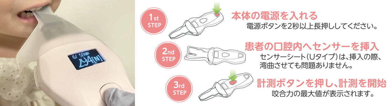 「口腔機能低下症」の咬合力検査や「有床義歯咀嚼機能検査」の検査にも用いることができる歯科用咬合力計です。