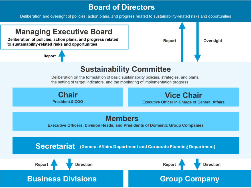 In addition, we have established the Sustainability Committee Secretariat (the "Secretariat"), which is responsible for supporting the operation of the Committee and coordinating with other internal committees to develop and advance sustainability initiatives. The Secretariat consolidates agenda items for Committee discussions, makes necessary internal arrangements based on the Committee's instructions, and facilitates the practical coordination and implementation of sustainability measures. Through these activities, it reports to the Sustainability Committee and receives further directions as needed.